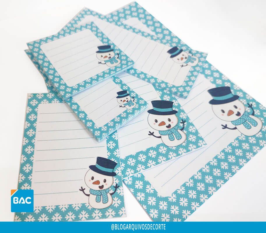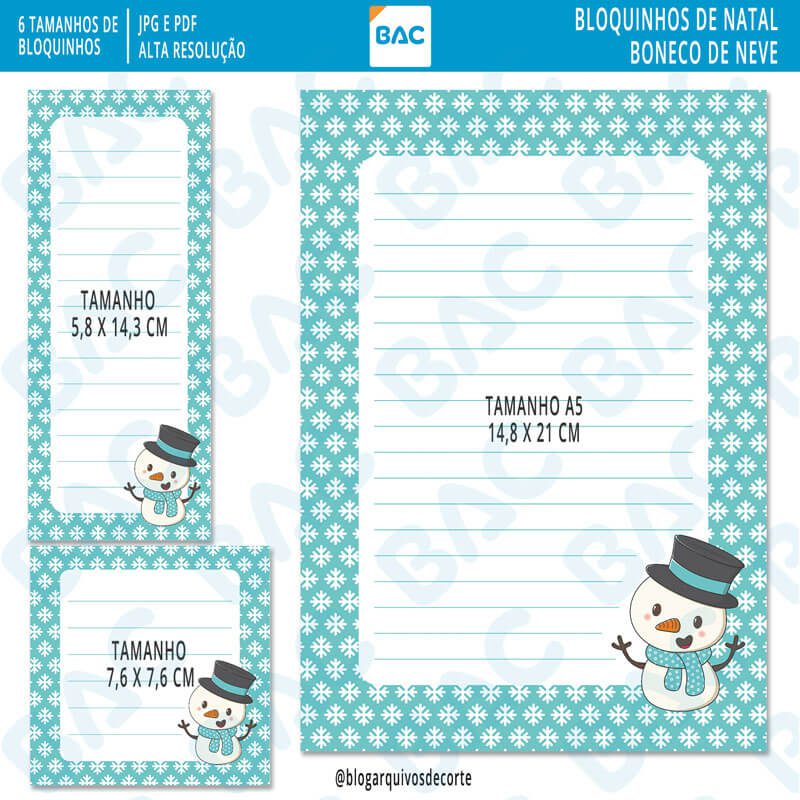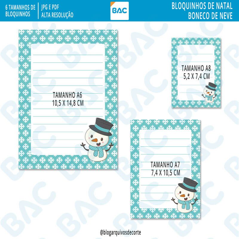 - 6 tamanhos de bloquinhos no tema natalino boneco de neve azul: