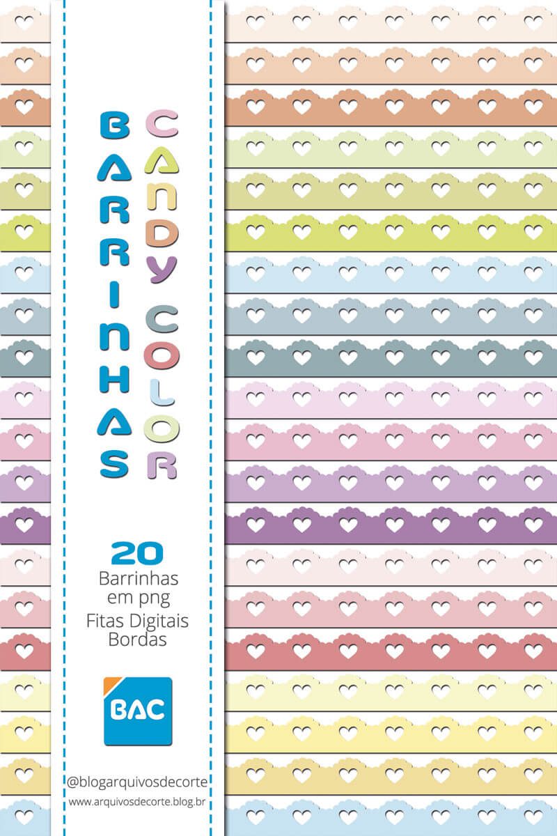 Esse Kit de Bordas Digitais de Corações Candy Color é ideal para fazer lembrancinhas, álbuns de fotos, scrapbook, convites, foto montagem, cartões etc.