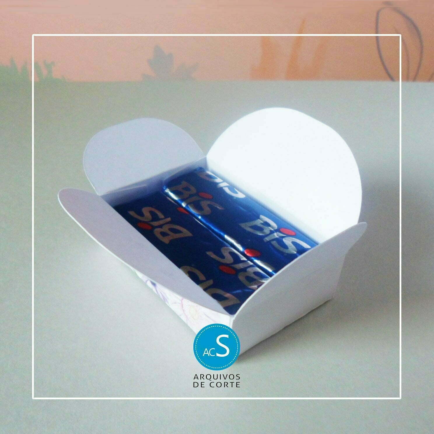 Este arquivo de corte é de uma caixinha para 2 chocolates BIS de Dia das mulheres de aproximadamente 5,7 cm x 3,8 cm x 1,6 cm (caixinha montada).