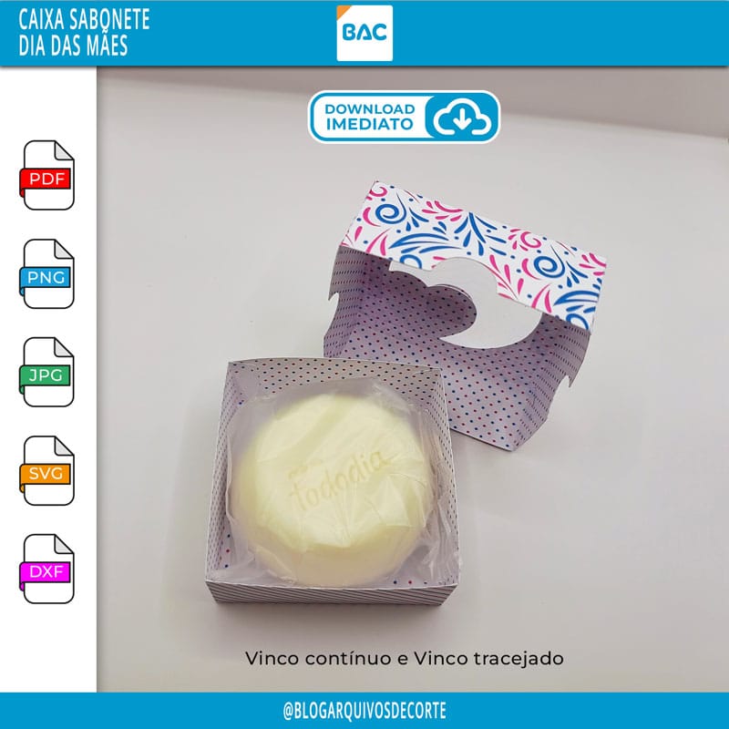 Os arquivos estão prontos para imprimir (em folha A4), cortar e montar. O Kit de Caixa 2 BIS Dia das Mães 2024 para imprimir contém 4 modelos de capas, todos com vinco tracejado e com vinco contínuo. Cada caixinha montada tem aproximadamente 6 x 4,2 x 1,7 cm. Cada arquivo está disponível nos seguintes formatos: svg, dxf, pdf, png, jpg. Você encontra o passo a passo de como montar a Caixa 2 BIS aqui no site.Caixa de Sabonete Redonda