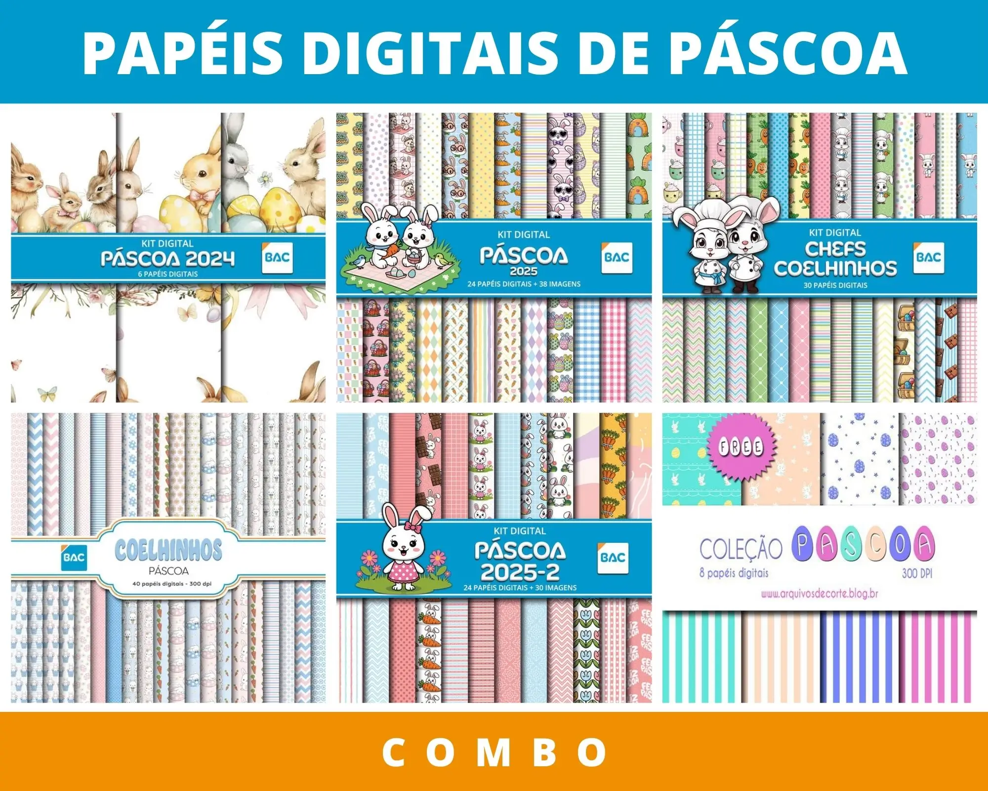 Combo Kits de Papéis Digitais de Páscoa