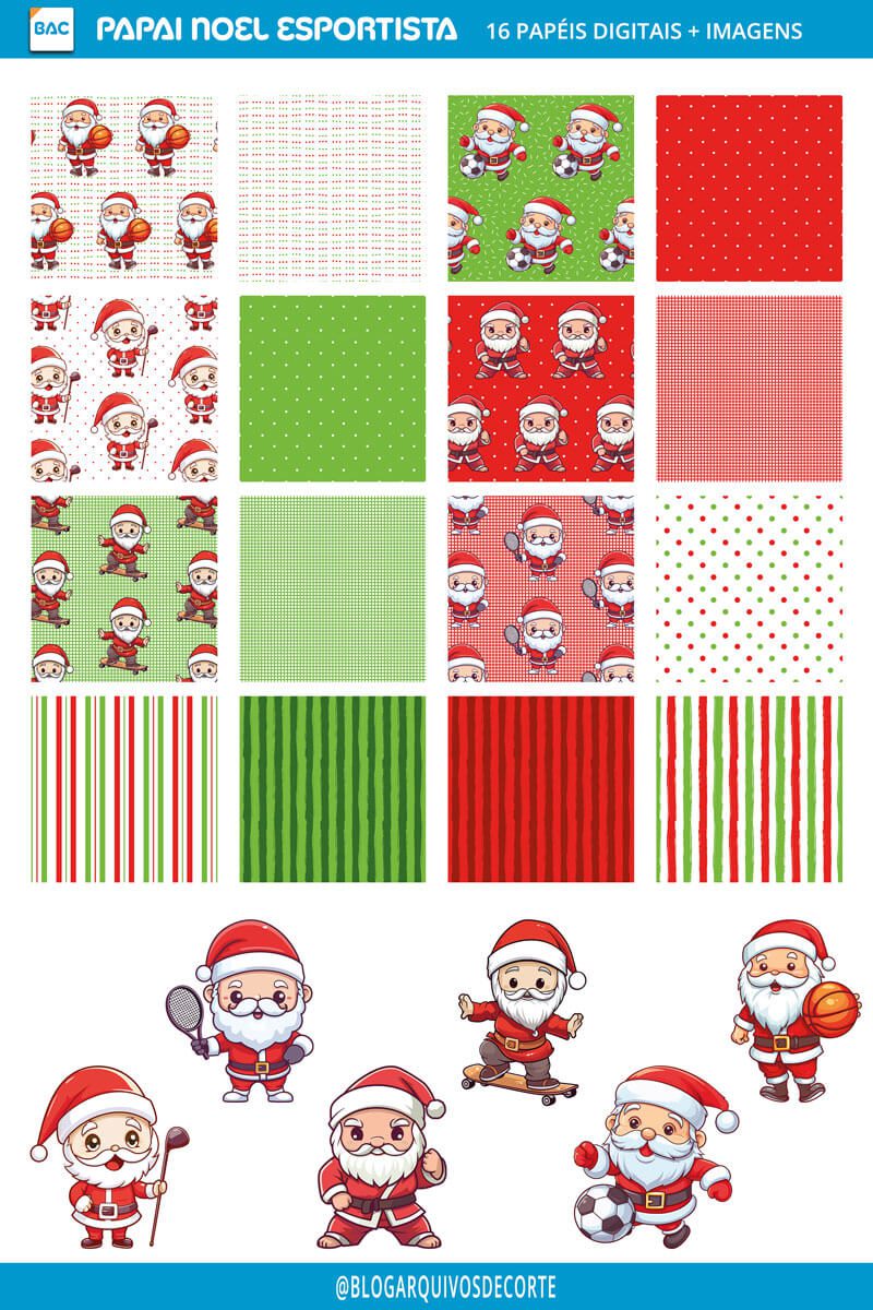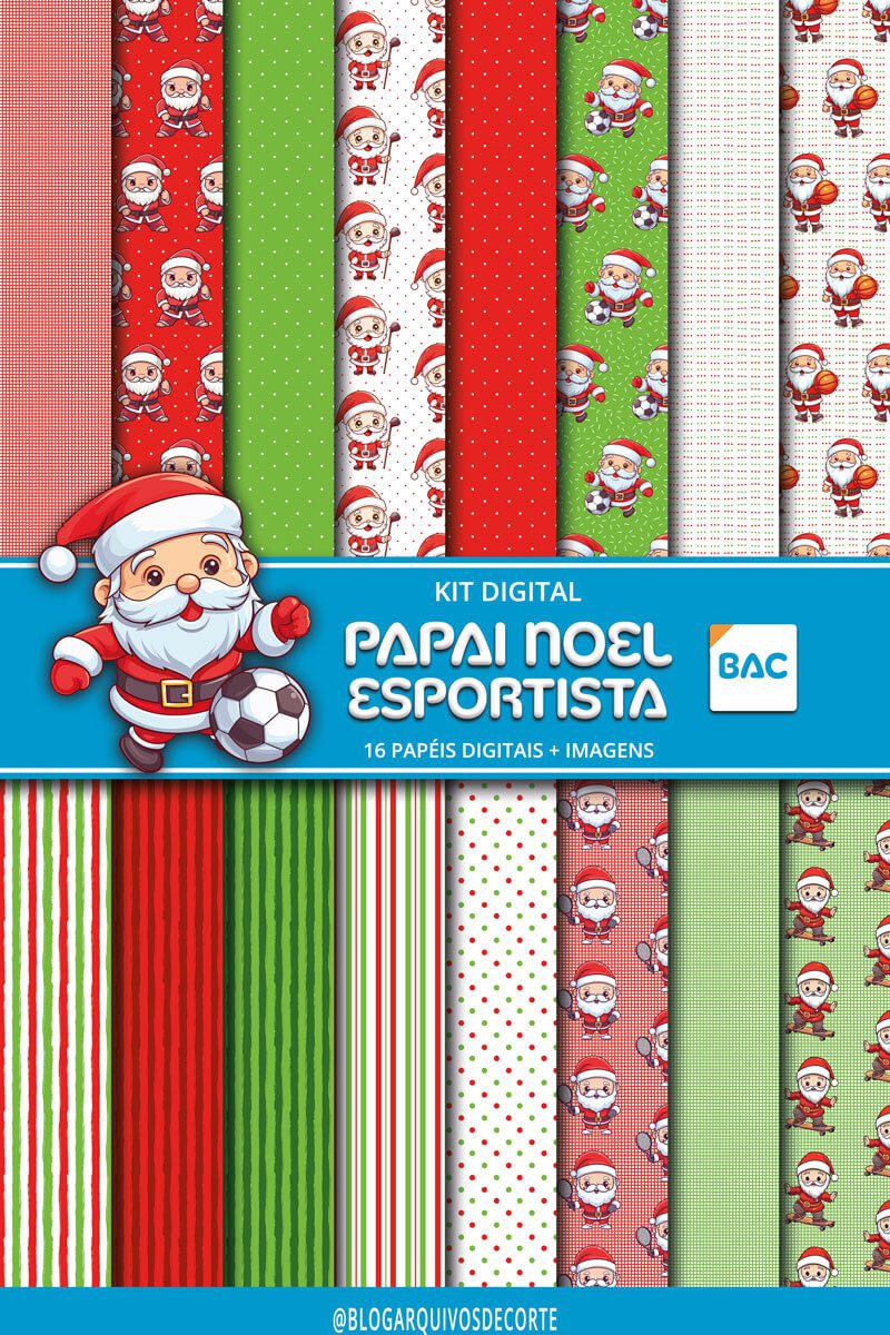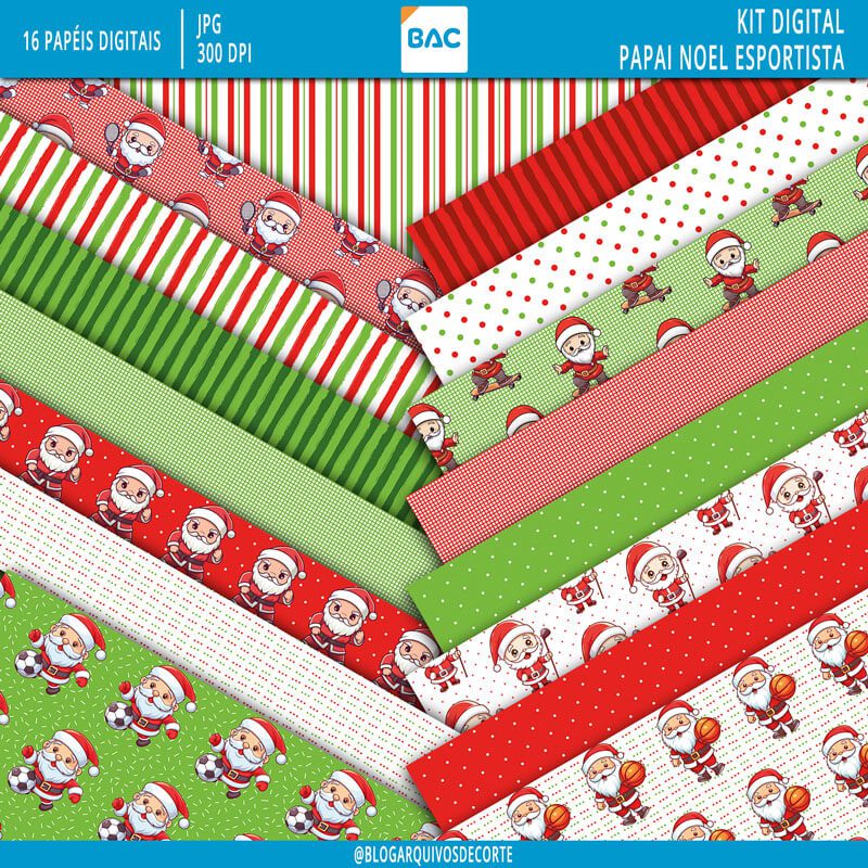O Kit de Papel Digital Papai Noel Esportista contém: