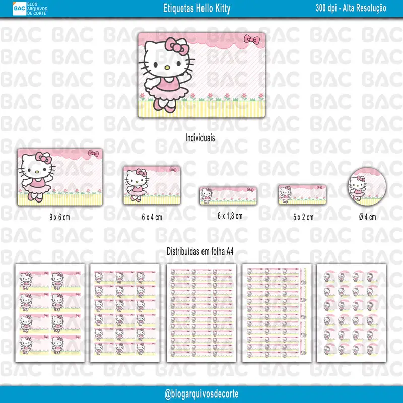 Kit de Etiquetas Escolares Hello Kitty – Arquivo de Corte