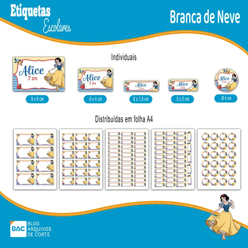 Arquivos incluídos (todos em alta resolução) em cada kit de Etiquetas Escolares