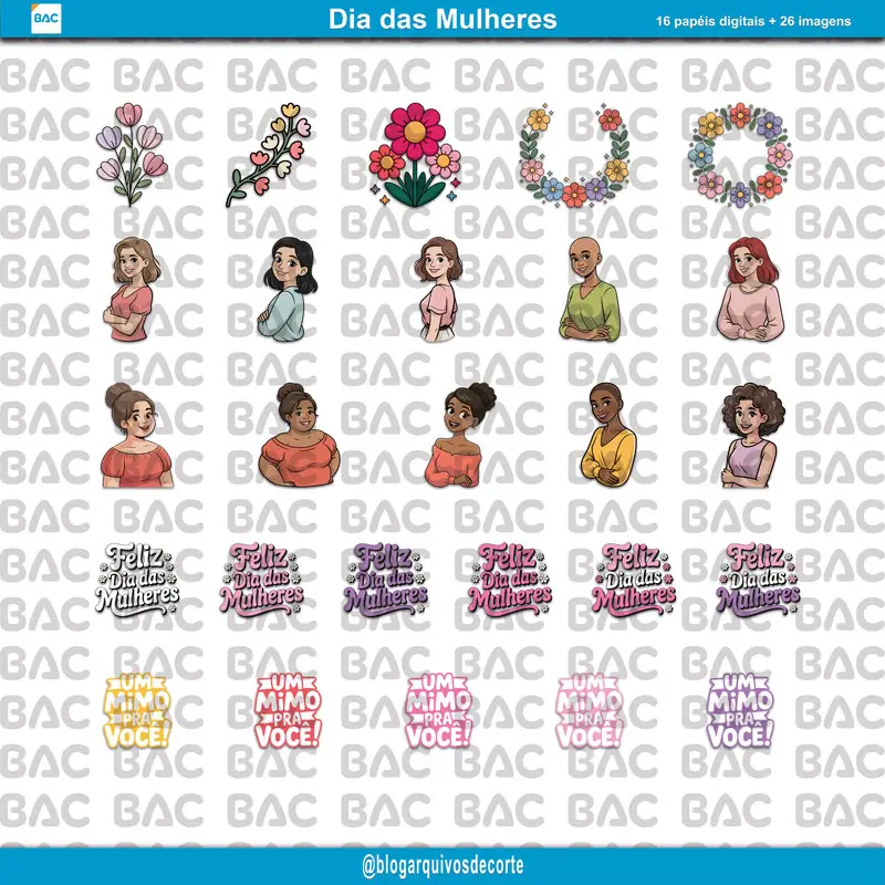 Com os papéis digitais dia das mulheres, você pode criar, por exemplo, lindas lembrancinhas personalizadas de volta às aulas. Não perca!