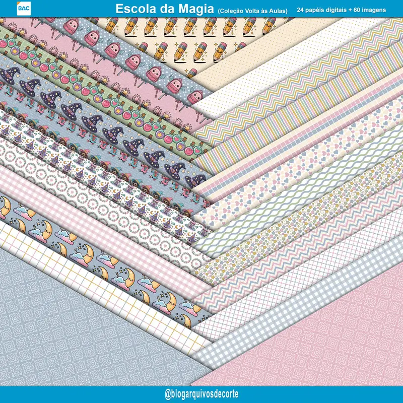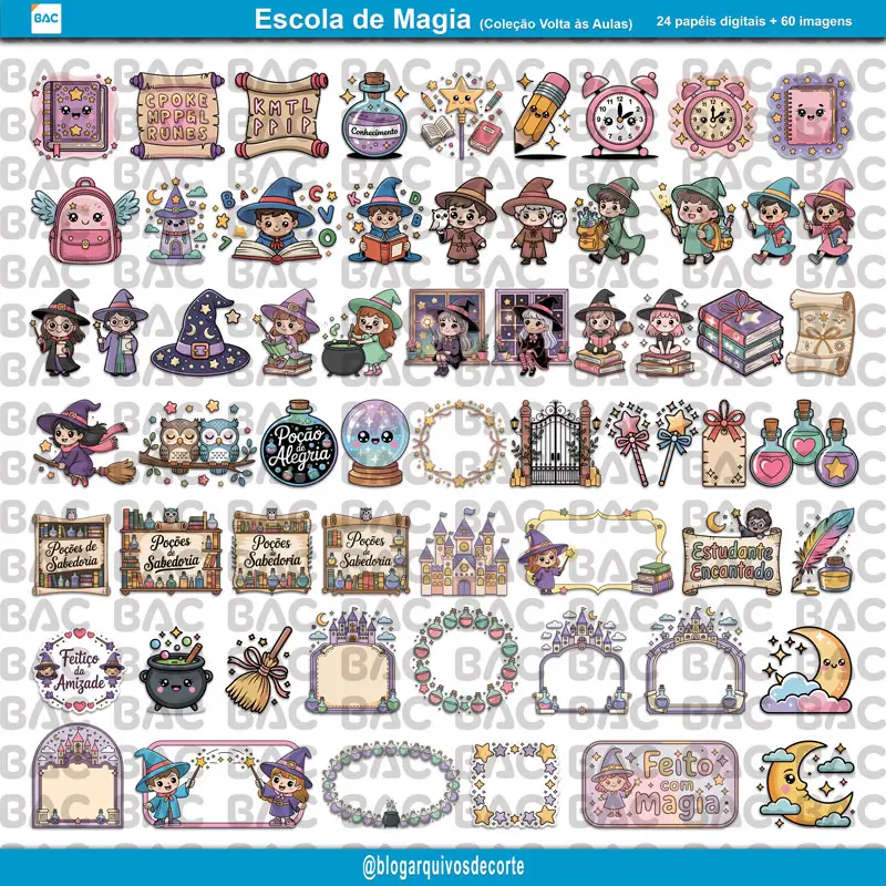 O Kit de Papel Digital Escola de Magia é perfeito para quem deseja transformar a volta às aulas em pura magia. Ideal para designers, artesãs e amantes de DIY que querem dar vida aos seus projetos mágicos. Ele é composto por:
