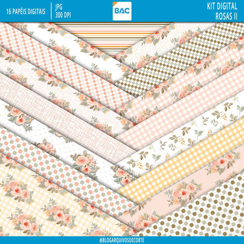 Esse Kit de Papel Digital Rosas II é ideal para fazer lembrancinhas, álbuns de fotos, scrapbook, convites, foto montagem, cartões etc.