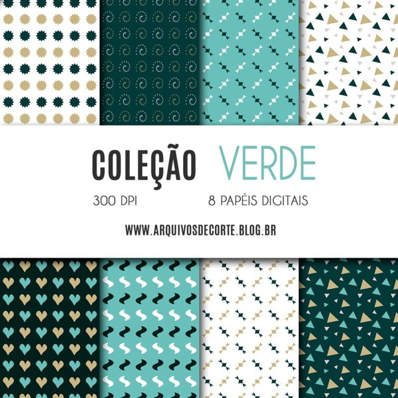 Kit de Papéis digitais verde grátis! São 8 lindos papéis digitais em tons de verde que podem ser usados em scrapbooks, decorações, papelaria personalizada etc.