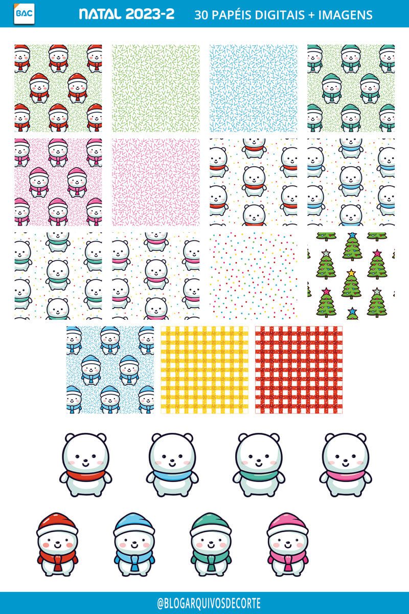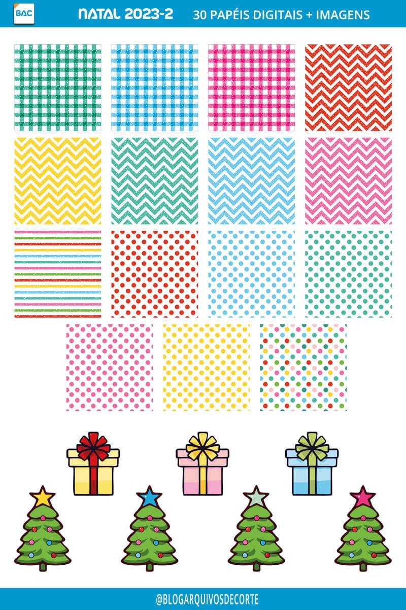 Com os papéis digitais de Natal 2023-2, você pode criar lindas lembrancinhas personalizadas, convites etc.