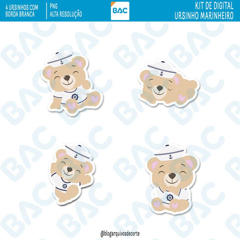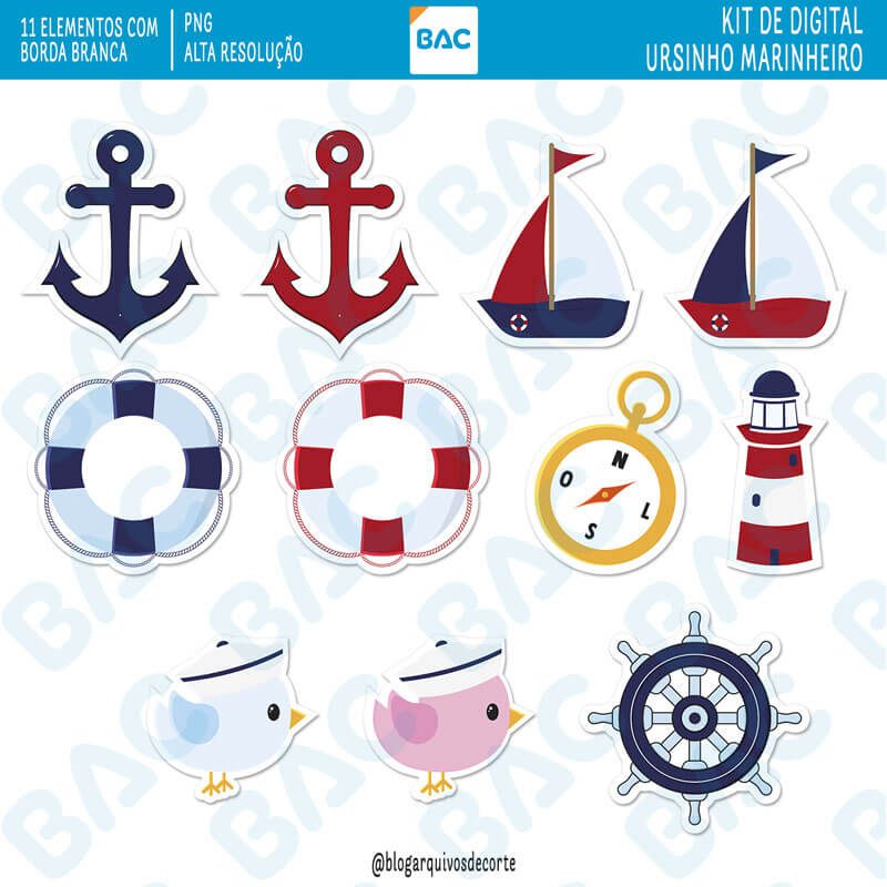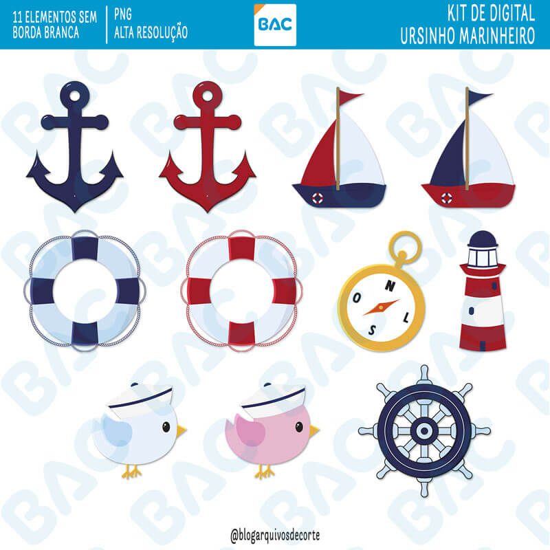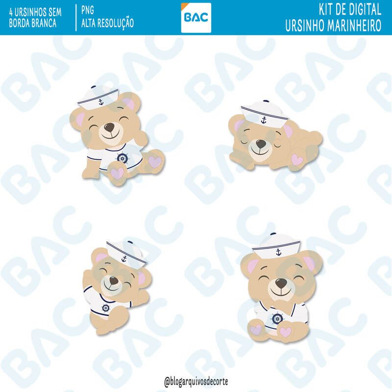 Esse Kit Digital Ursinho Marinheiro é ideal para fazer lembrancinhas, álbuns de fotos, scrapbook, convites, foto montagem, cartões etc.