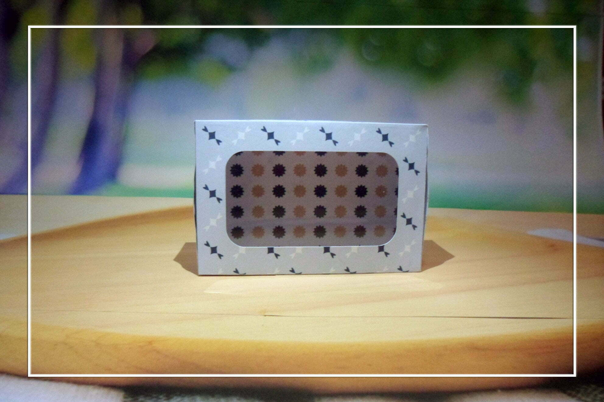 A caixinha montada tem aproximadamente 12 cm x 3 cm x 8 cm (Largura x Altura x Profundidade).