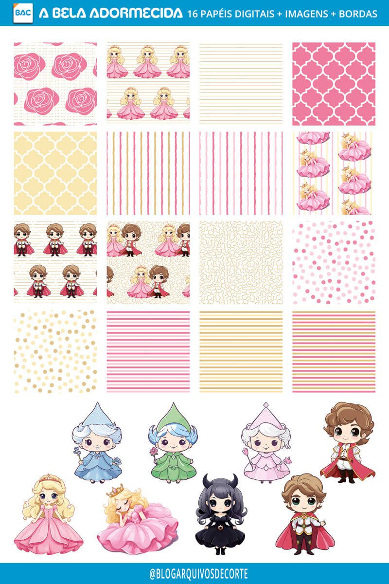 Esse Kit de Papel Digital A Bela Adormecida (textura da Bela Adormecida) é ideal para fazer: