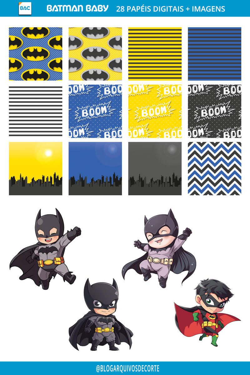 Com os papéis digitais do Batman Cute, você pode criar lindas lembrancinhas personalizadas, convites etc. Aqui no Blog, tem um post sobre a fonte do Batman. Não perca!