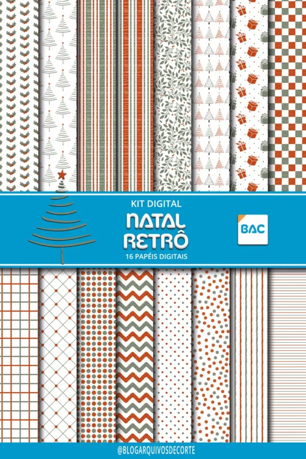 Esse Kit de Papel Digital de Natal Retrô (fundo de natal retrô) é ideal para fazer: