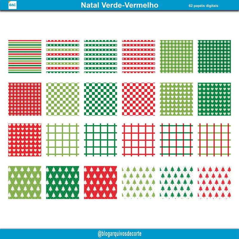 Esse Kit de Papel Digital de Natal Verde e Vermelho é ideal para fazer lembrancinhas, scrapbook, convites, foto montagem, cartões etc.