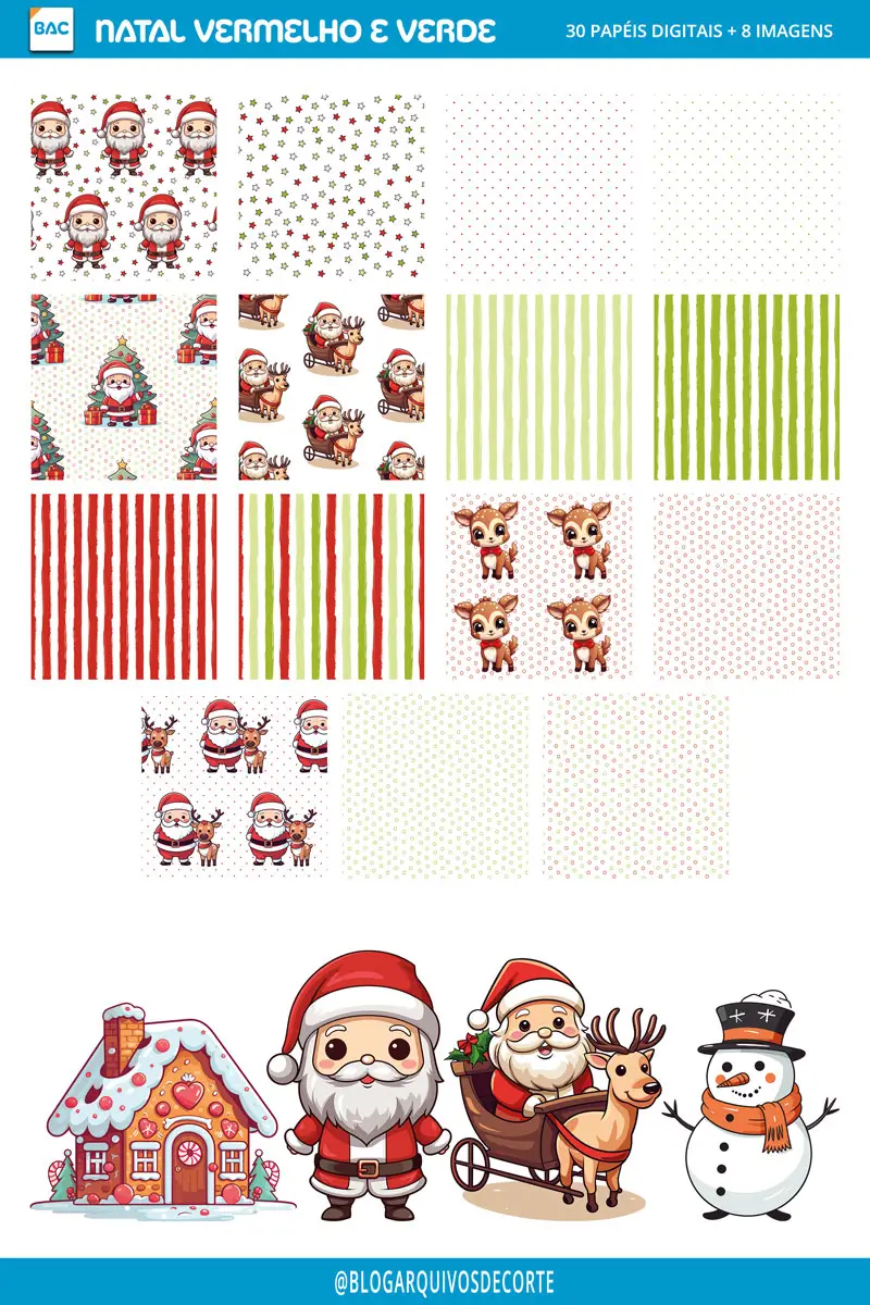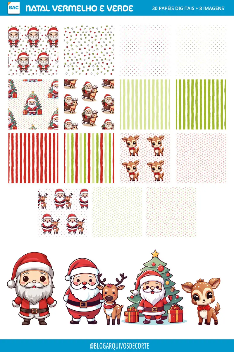 - Kit de Papel Digital de Natal Verde e Vermelho