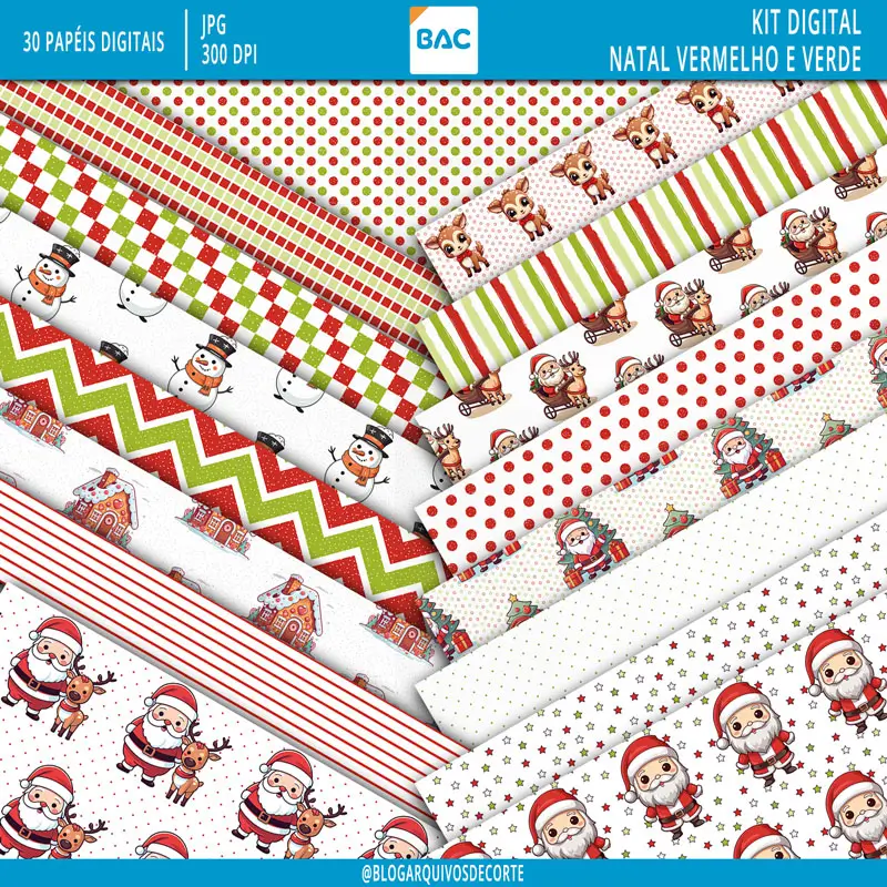 Esse Kit de Papel Digital de Natal – Vermelho e Verde (textura de Natal) é ideal para fazer: