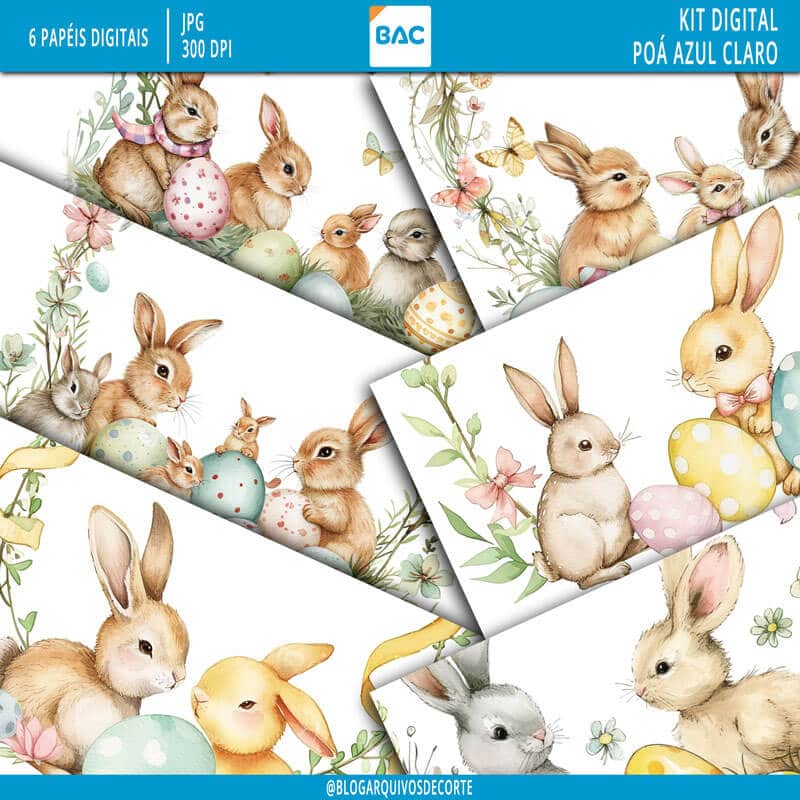 Esse Kit de Papel Digital de Páscoa 2024 é ideal para fazer lembrancinhas, álbuns de fotos, scrapbook, convites, foto montagem, cartões etc.