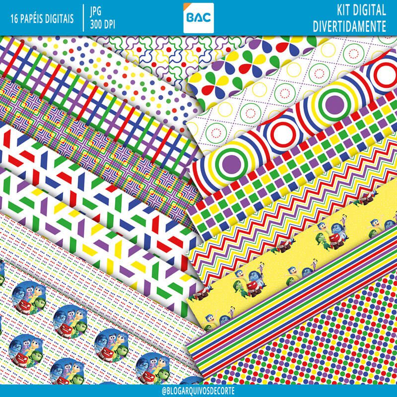 Com o Kit de Papel Digital Divertidamente, você terá acesso a: