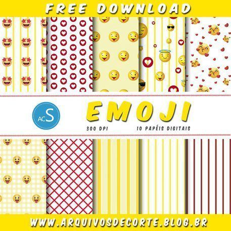 Esse kit de Papel Digital Emoji é ideal para fazer lembrancinhas, álbuns de fotos, scrapbook, convites, foto montagem, cartões etc.