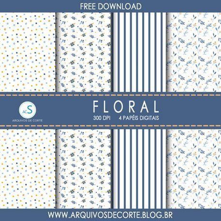 O Kit de Papel digital Floral Azul é composto por 4 papéis digitais em alta resolução nas cores azul, amarelo e branco.