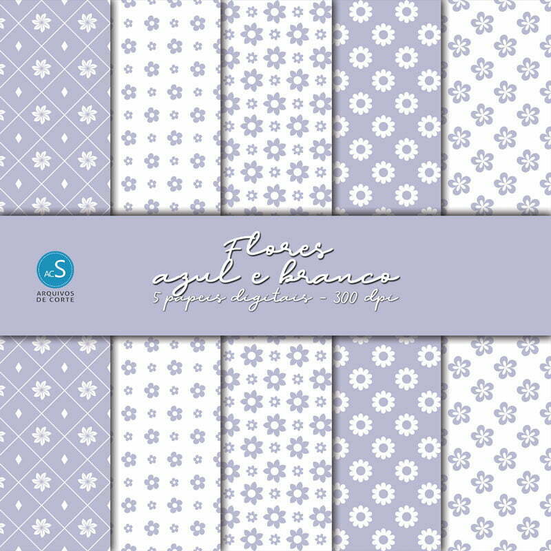 Cada kit possui 5 papéis digitais em alta resolução (300 dpi) de 12 in x 12 in.