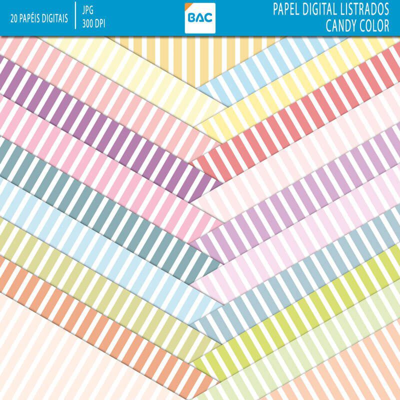 Esse Kit de Papel Digital Listrado Candy Color é ideal para fazer lembrancinhas, álbuns de fotos, scrapbook, convites, foto montagem, cartões etc.
