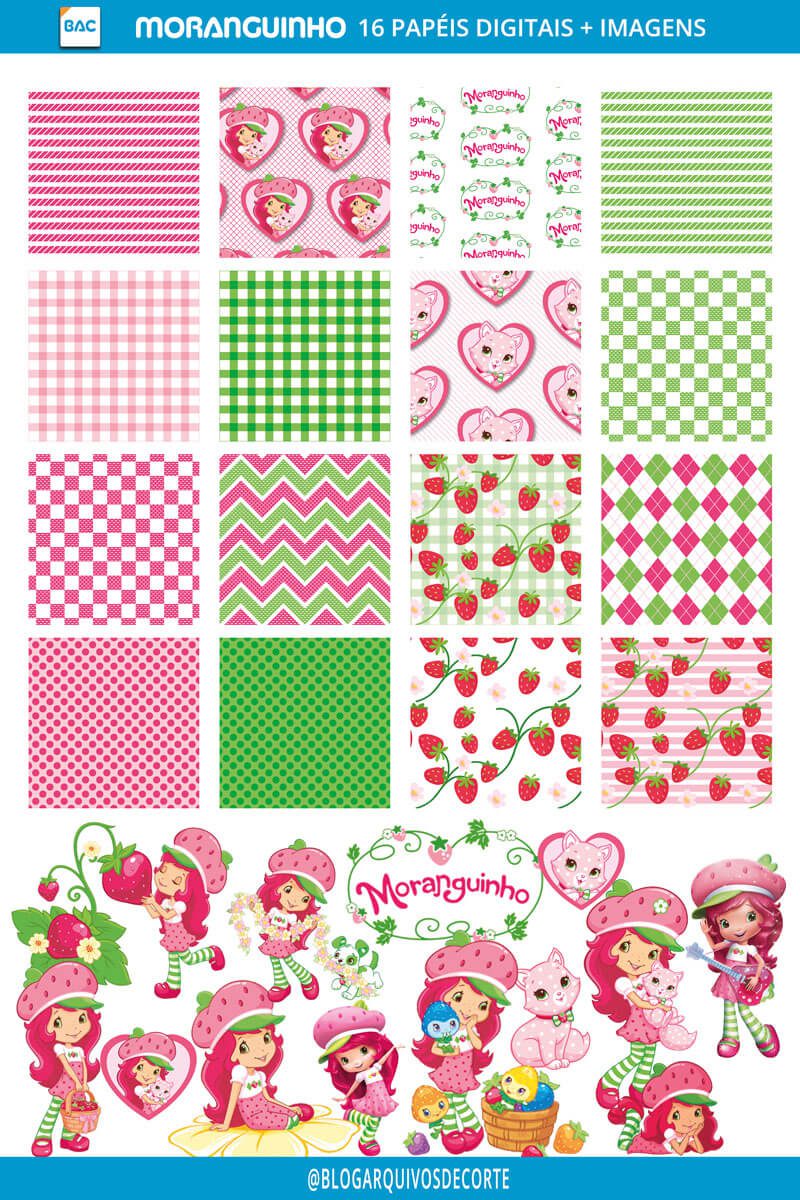 Esse Kit de Papel Digital Moranguinho (fundo da Moranguinho) é ideal para fazer: