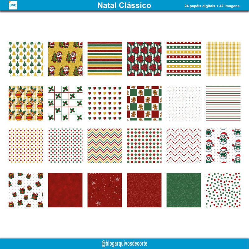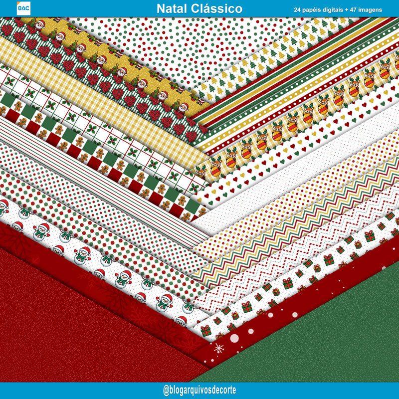 Com os papéis digitais Natal Clássico, você pode criar lindas lembrancinhas natalinas personalizadas, convites etc. Não perca!