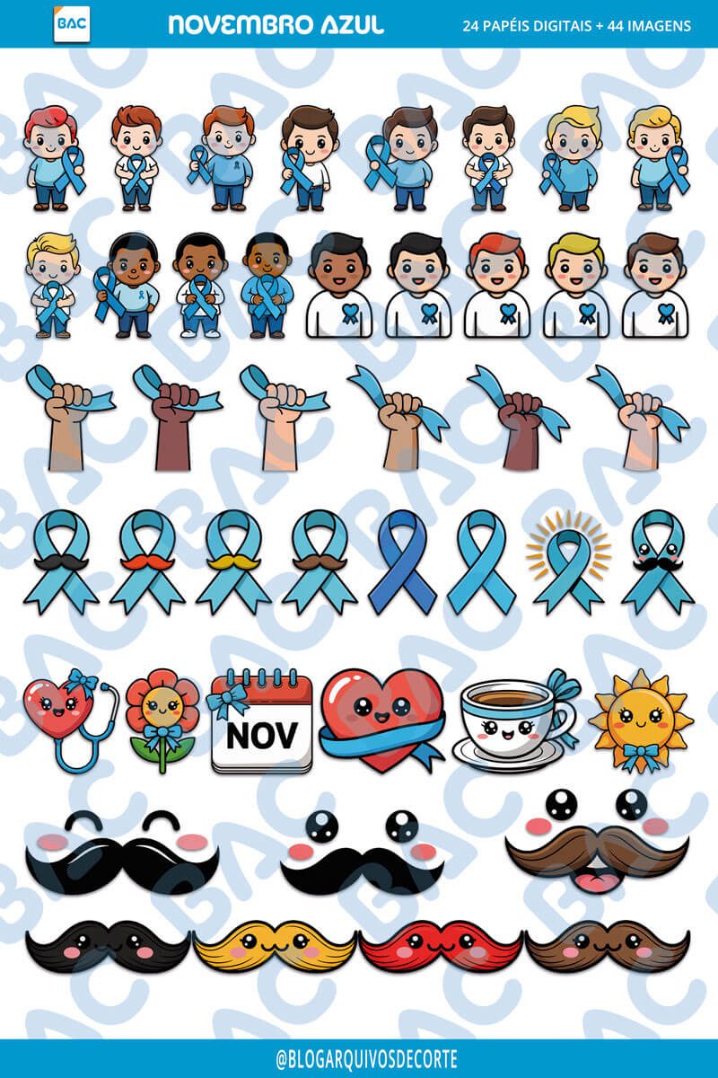 O Kit de Papel Digital Novembro Azul 2025 contém: