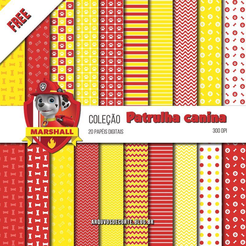 Baixe 20 lindos modelos gratuitos de papéis digitais do cachorrinho Marshall da Patrulha canina.