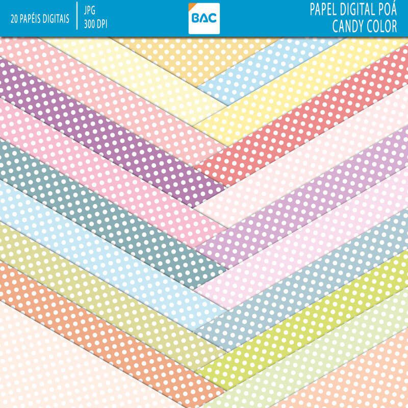 Esse Kit de Papel Digital Poá Candy Color é ideal para fazer lembrancinhas, álbuns de fotos, scrapbook, convites, foto montagem, cartões etc.