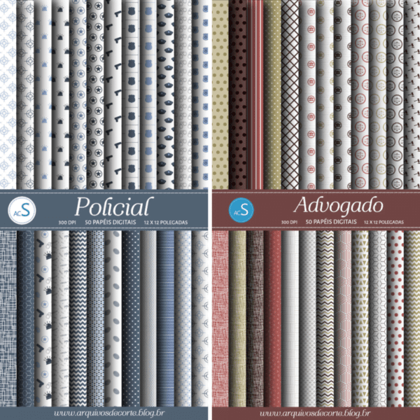 Esta oferta é composta por 2 kits de papéis digitais (Papel digital Policial e Papel digital Advogado) da Coleção de Papel digital Profissões.