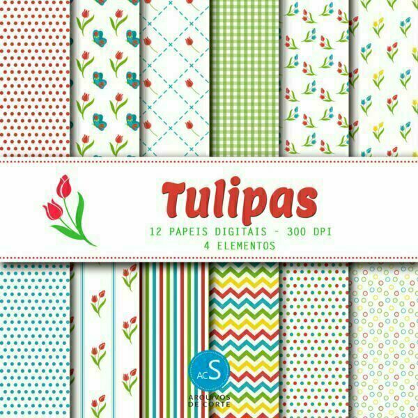 Esse kit de Papel digital Tulipas é ideal para fazer lembrancinhas, álbuns de fotos, scrapbook, convites, foto montagem, cartões etc.